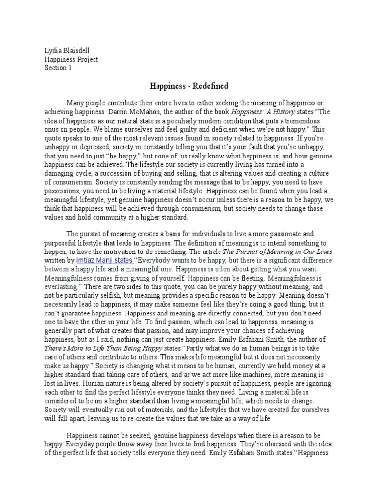 Possessions can be gained and lost, and with that comes fear. And fear rarely leads to happiness. Well, what is happiness essay can. People need to have a sense of purpose.